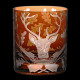 Verres à whisky en cristal ARTĚL double couche couleur soufflé bouche gravé main, collection Forest Folly. Chaque verre est décoré d'un portrait d'animal encadré par des branches de chênes et au dessus de deux fusils croisés.